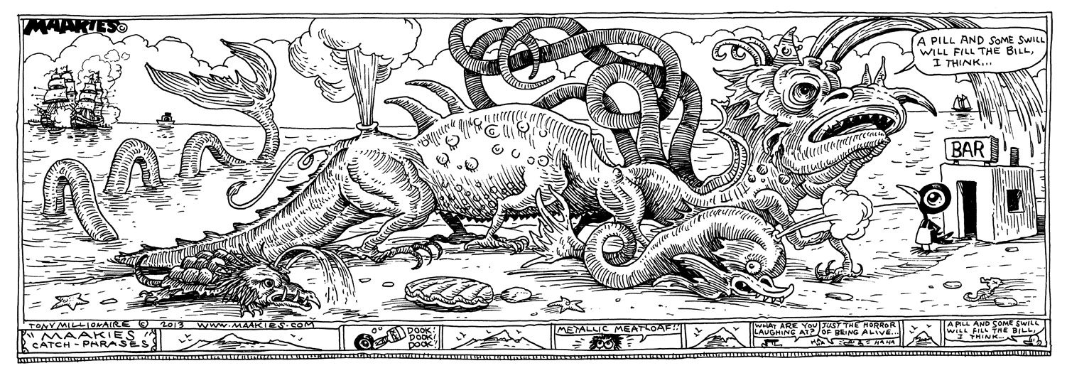 Tony Millionaire was born in Boston and grew up in Gloucester, Massachusetts. He attended the Massachusetts College of Art for three and three quarters of a year. Tony writes and draws the ongoing adventures of Sock Monkey, published by Dark Horse Comics since 1998. He is the creator of the syndicated comic strip, Maakies, which has run in weekly newspapers across the country since 1994 and has been collected by Fantagraphics, who also published his graphic novels, Billy Hazelnuts and Billy Hazelnuts and the Crazy Bird.