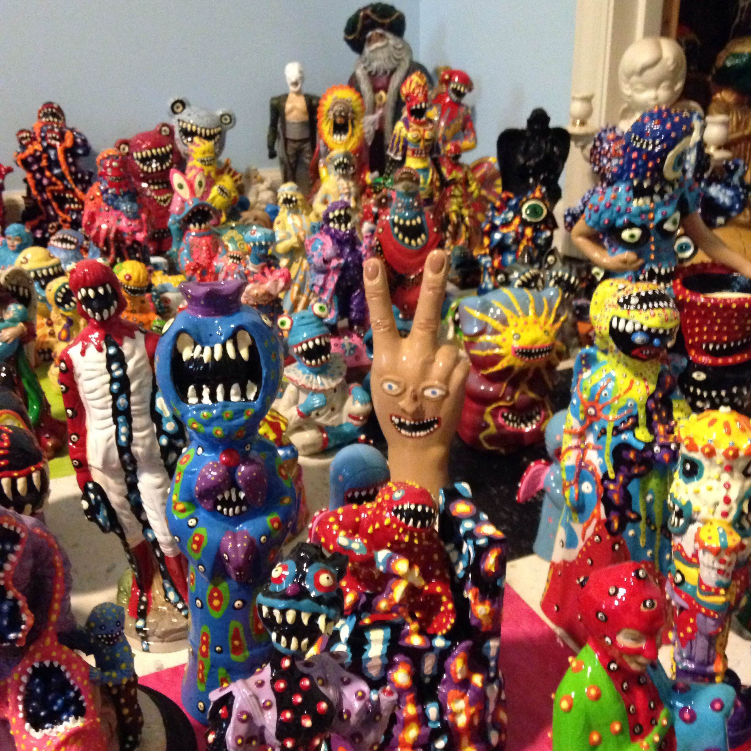 Wonderful! I love David Barnes’ work so much. It’s been a constant presence in my life through of Montreal since 2005, and it just keeps getting more intense. My brother, who is apparently amazing, bought one of the porcelain dolls for me at a show in Mississippi earlier this year. It’s been riding shotgun in my car since I got it. I love the way his work forces you to acknowledge it through textures and patterns and profusion. It’s so immediate that it’s a great companion to his beother’s musical chaos.