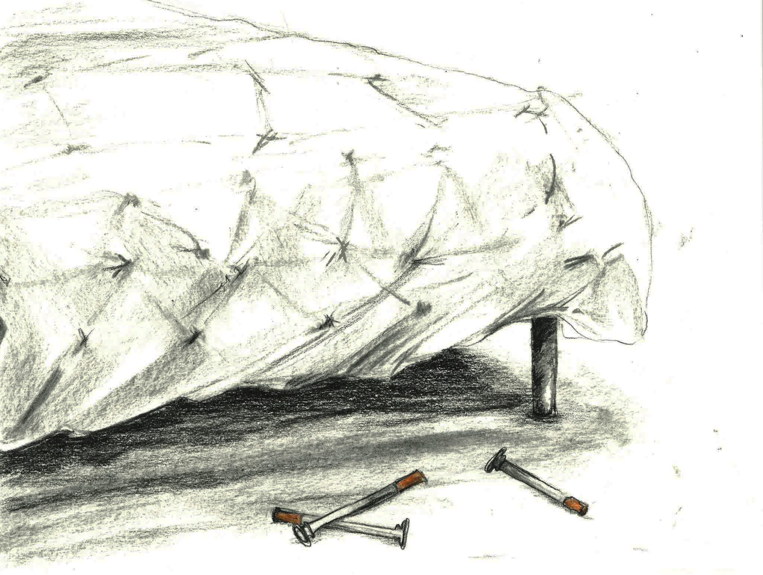 He hadn’t seen the door. “Hello?” he said back. His eyes darted from wall to wall. Syringes in orange caps were strewn on the flowered bedspread. He held one arm.