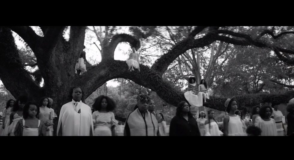 In iconic images, the girls sit and stand with Beyoncé on the limbs of the ancient, twisted trees where their ancestors also sat. Wearing all white, as the New York Times points out, they channel Julie Dash’s 1991 film Daughters of the Dust about Gullah women who maintained African culture despite the American terrorism of slavery. Like the Daughters of the Dust, these young women of the future will know and love their history, culture, and themselves. The curse will be broken.