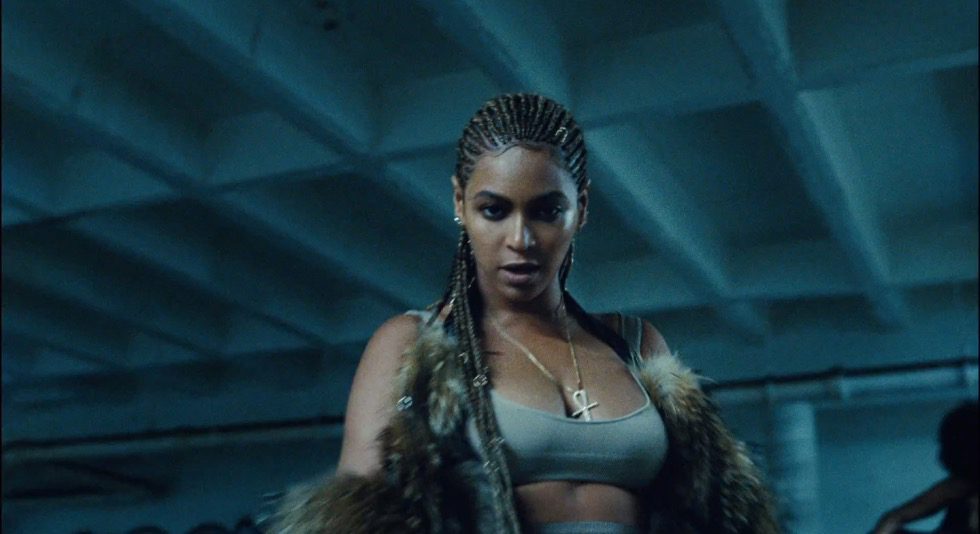 She’s moved beyond anger to apathy on the trap banger, “Sorry.” Still embracing West African spirituality, Beyoncé employs Nigerian visual artist Laolu Senbanjo to paint the faces of her and her Black woman posse in Yoruba’s Sacred Art of the Ori. Senbanjo tells OkayAfrica that the body art, particularly on the face, connects the spirit of the wearer to music or a mood. Her mood is upbeat. She’s dancing. She’s having fun with her sisters. She’s over him. “Middle fingers up, tell him, ‘Boy bye,’” she sings victoriously.