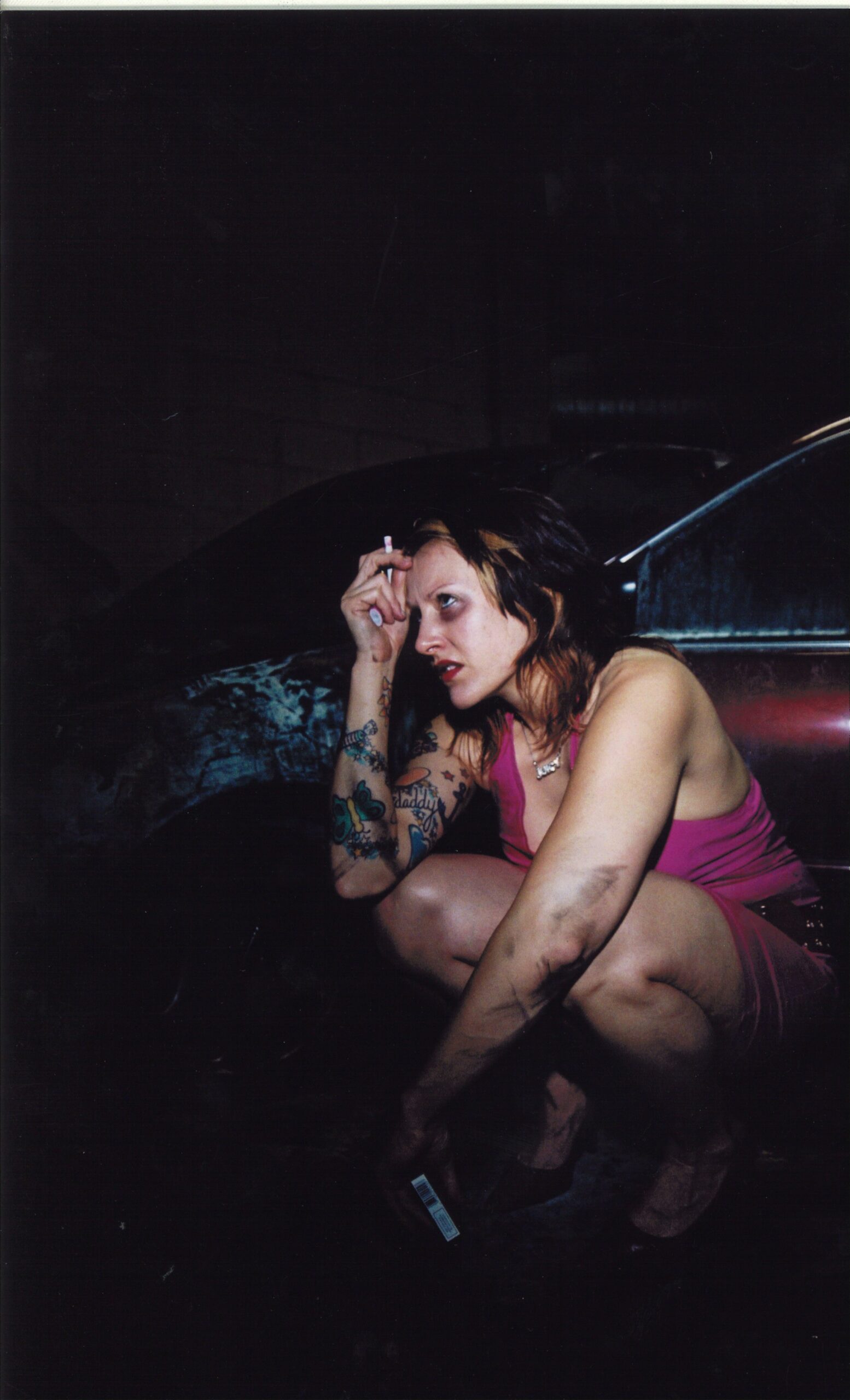 I looked at her photos. Her portraits showed a confrontational suffering that was as disarming as it was beautiful. Her photography seemed to mirror her own unspeakable, fragile pain that yearned for oblivion. In those sex-work days with Jen, perhaps I was also still hungering for a secretive, dangerous escape. The familiar kind—like the inches of dirt on my brother’s floor; the charred spoon on his coffee table next to soggy, used cotton. His pot plants growing in the back room past the dog shit and car parts in his yard. His grungy Hello Kitty Pajama bottoms. The small crystal Christmas tree paperweight on his window ledge in a dust cloud that could look like snow if you squinted and didn’t breathe. I felt so comfortable there, not breathing. Oblivion.