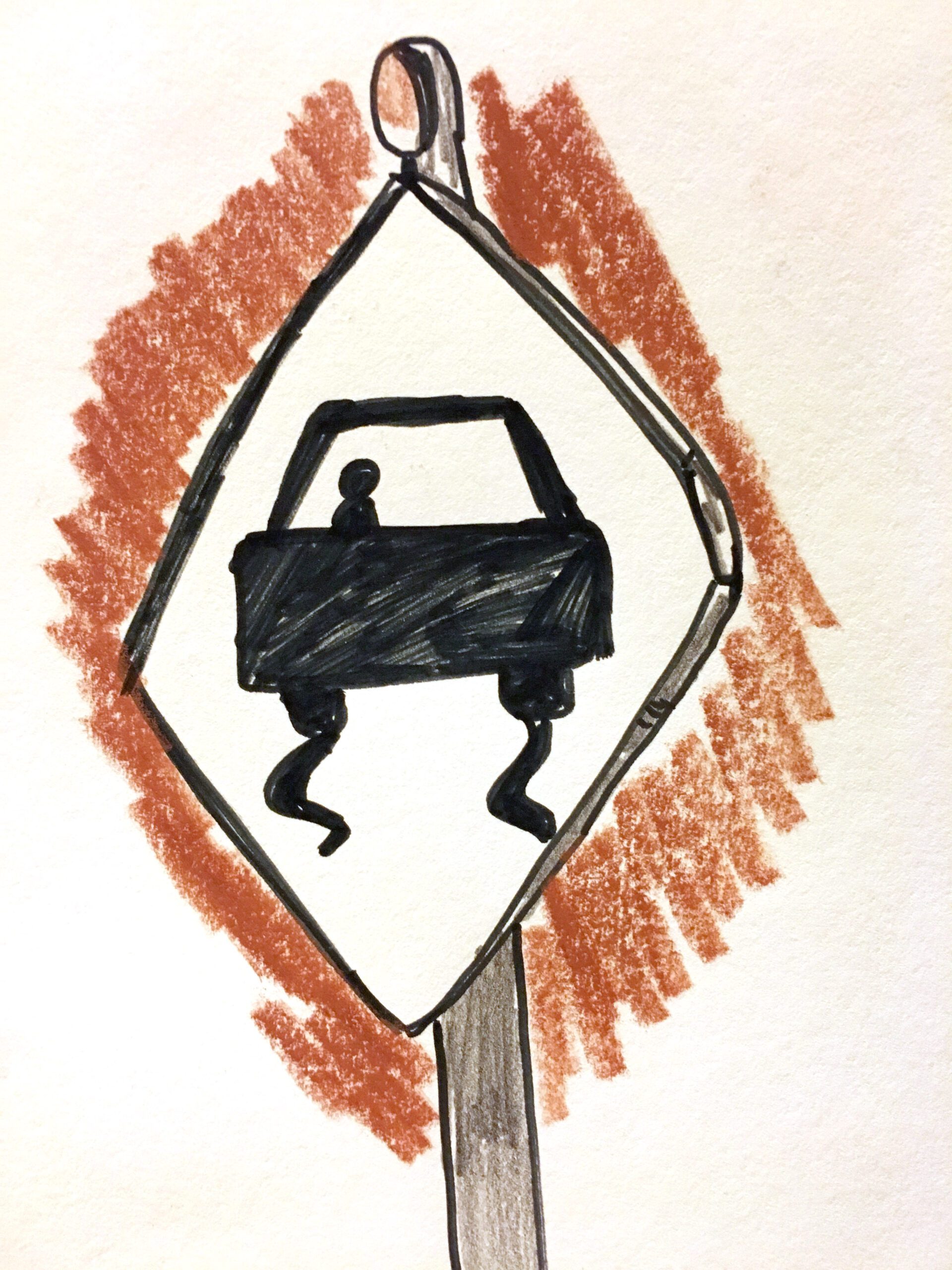 Soon, we noticed the traffic signs along the road were replaced with orange cautions, warnings: blatant foreshadows. Flimsy orange plastic webbing: guardrails. The car bobbed violently along the unpaved road. We were long past mile marker zero, not that it mattered when the beginning resembled the end, the direction we traveled becoming irrelevant. Running out of fuel at any point would have only kept us together longer. But we knew reaching the end, together, perhaps at last, was only just a matter of time.