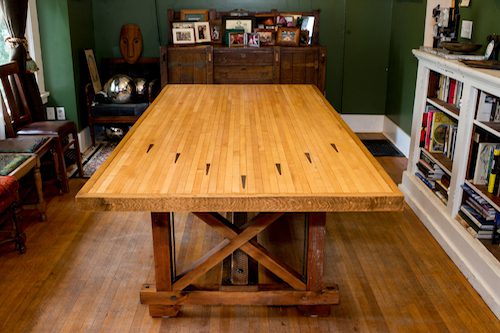 Feature image by Brad Stemke. Images of table made from Sunset Bowl lane by James Taylor (Photo credit: Victoria Holt).