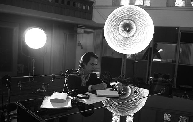 “This is difficult, really fucking difficult,” Cave tells us, seated at the studio piano, and inevitably we think he’s talking about something much bigger than the process of overdubbing vocals. It’s almost like he can’t find the words to speak about “certain events,” until he puts them into song. The first new track we hear, the first track on Skeleton Tree, “Jesus Alone,” gets right to it: “You fell from the sky, crash landed in a field near the River Adur.” Partially because at least some of the song was written and recorded prior to Arthur’s death, “Jesus Alone” does not continue in this vein of direct reflection on the tragedy, the identity of the song’s addressee morphing in a protean fashion: “You’re a young man waking, covered in blood that is not yours. You’re a woman in a yellow dress surrounded by a charm of hummingbirds.”