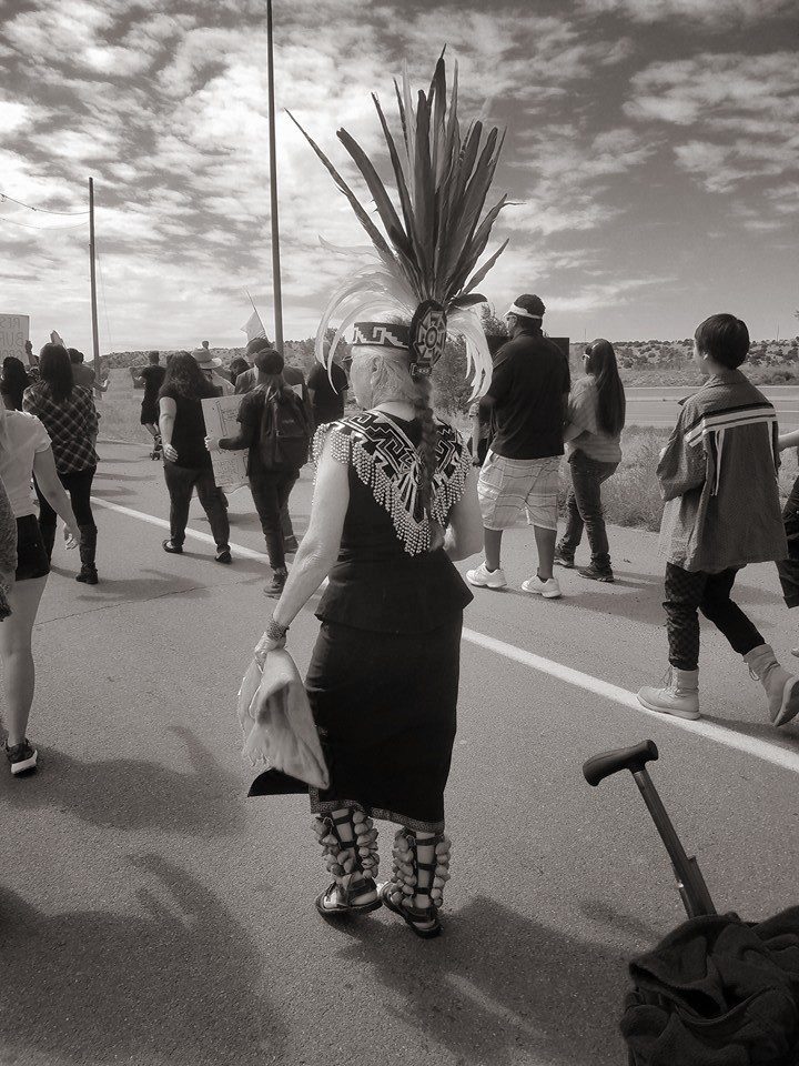 Don’t you dare ask me to walk again. I am seventy-two years old and I stand. I stood for civil rights in the ‘60s, for peace against war in the ’70s and ’80s and I am still standing for Oceti Sakowin in North Dakota today. And I stand for Missing and Murdered Native women all over this land. I stand with anyone who will risk danger to protect our sacred waters and this planet from its destruction by greed and the disregard for life. I stand with them. Don’t ask me to walk again. I am done.