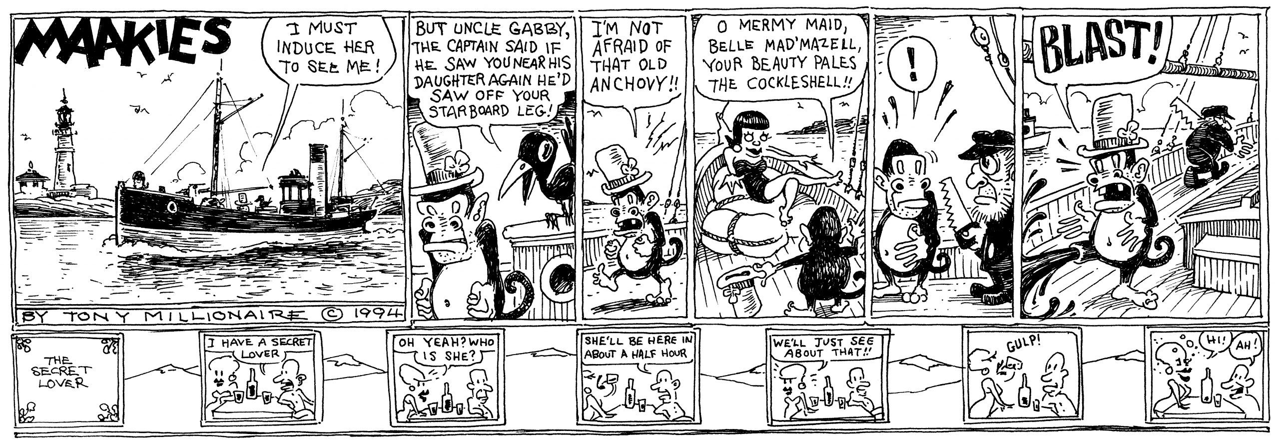 We’ve been running Maakies here at The Rumpus since way back in 2011, so it’s with a heavy heart that we share that Maakies is coming to an end. As a tribute to the series and to Tony Millionaire, here are the first three Maakies that ever existed.