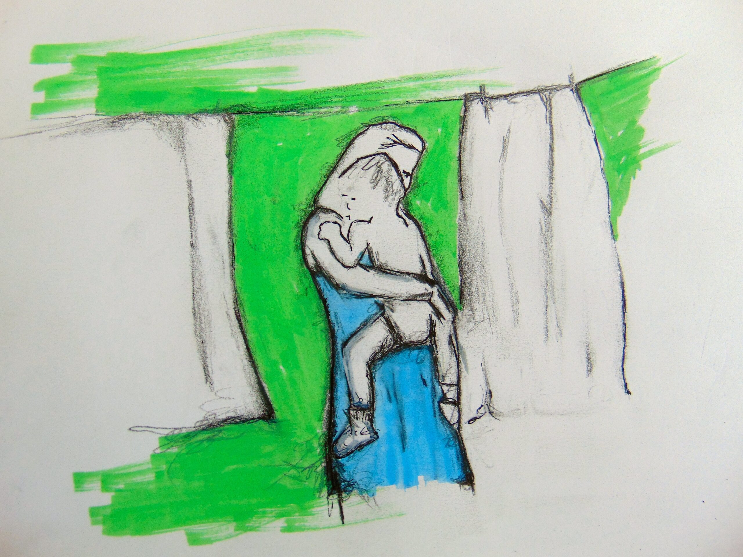 Suicide. Beauty takes my courage away this cold autumn evening. My year old daughter’s red robe hangs from the doorknob shouting stop.