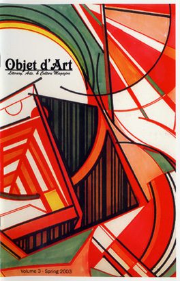 Rumpus: I remember that Objet d’Art organized a trip to the Dodge Poetry Festival in the fall of 2002, and we met Robert Hass, Billy Collins, Rita Dove, and Robert Pinsky there. We got to talking about the New Jersey poetry scene with Pinsky at the festival. We gave him a copy of Objet d’Art, billing it as the radical alternative to The Anthologist. Pinsky was delighted to receive it. He had been a contributor to The Anthologist and he remembered the magazine, its mystique, and the literary scene of New Brunswick quite well. In a weird way, the gentlemen’s club vibe of The Anthologist was a catalyst for our rebellion. We launched Objet d’Art in the fall of 2001, right after the 9/11 attacks. We wanted the magazine to be radical and alternative and experimental.
