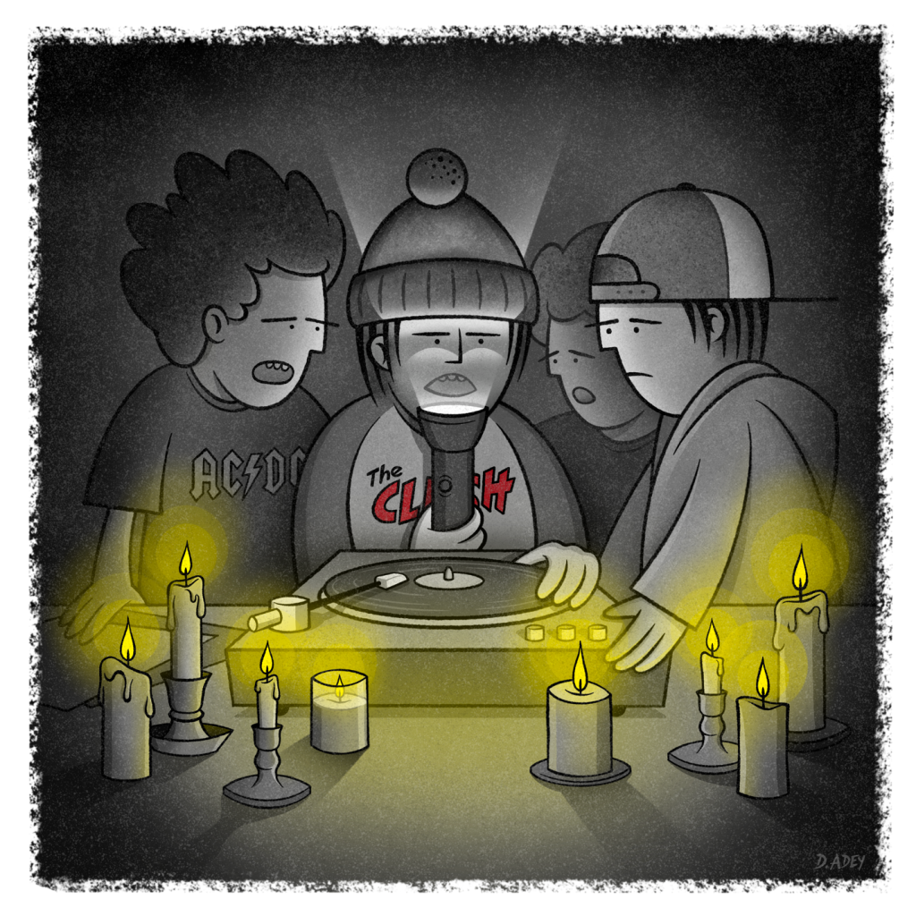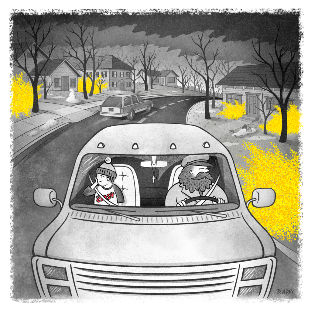 When the bus pulled into the church parking lot later that night, my mom was waiting in our family station wagon. I hopped in the back seat and informed her that God told me to burn all my records and tapes. So later that week, with a few church friends, we doused the pile with lighter fluid and lit the match. We jumped up and down, smashing, burning, and hollering like a liturgical mosh pit, squirting more and more lighter fluid until I accidentally set my friend’s foot on fire. The whole scene was over in about fifteen minutes, and I was left to clean up the mess alone, scooping up the smoldering shards with a snow shovel to clear the driveway before my dad got home from work.