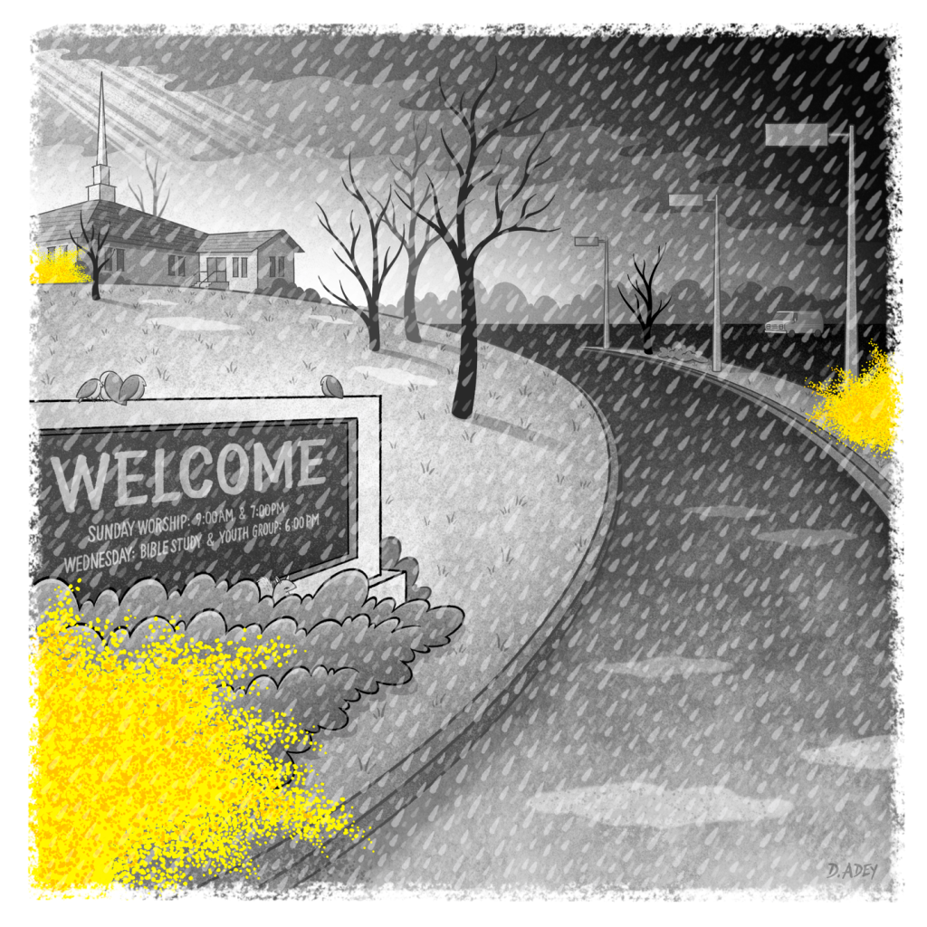 It was a typical early spring afternoon in New Jersey when the weather can’t seem to make up its mind. I was riding along in The Fiddler’s van for an errand he invited me to join him on. The few remaining snow plow piles passing by my salt-frosted window were the same ash gray as the gathering storm clouds overhead. Everything was dirty and colorless except the forsythia, which had just arrived. Its bare branches were invisible the week before, but it’s brilliant yellow blossoms were now enjoying their annual fifteen minutes of fame against the dormant trees, mud-splattered houses, and swampy front yards with scattered toys not seen since the first big snowfall. As we pulled into the back of the empty church parking lot, a sudden deluge pounded the van roof, ensuring that, for the moment, we weren’t going anywhere. A Keith Green cassette was playing, and The Fiddler lowered the volume just enough so he could take the lead vocal. He turned toward me in the passenger seat and sang the remainder of “Your Love Broke Through” directly to me with a piercing sentimental gaze. It felt awkward and disrespectful to look away, so I froze, and we locked eyes for what seemed like the longest song ever written. By the time the song finished, the windows were fogged over, and the damp air was saturated with the smell of cologne and diesel fuel. I didn’t know what to do, so I said “Thank you,” as if I was supposed to feel grateful, like he had given me a gift.